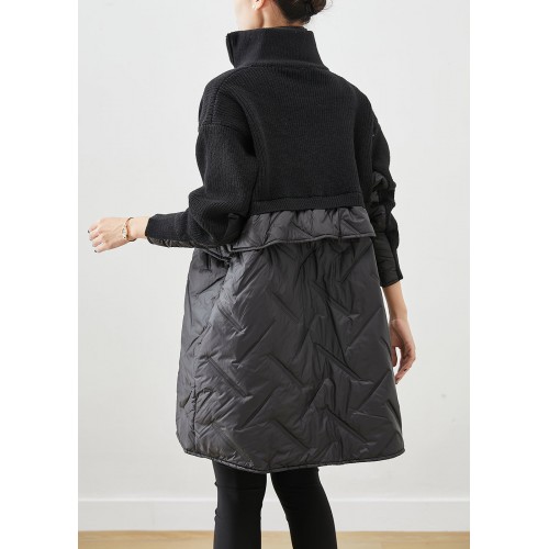 Product Code: women-black-zip-up-patchwork-fine-cotton-filled-knit-coat-winter