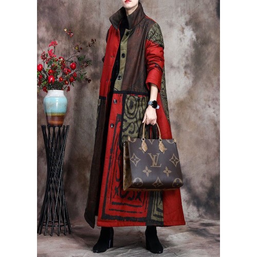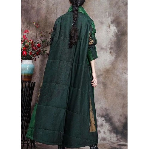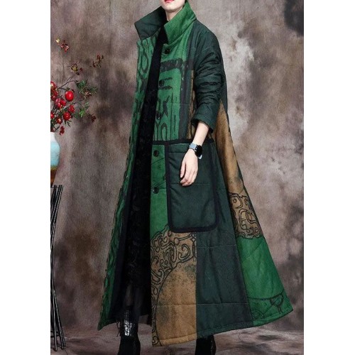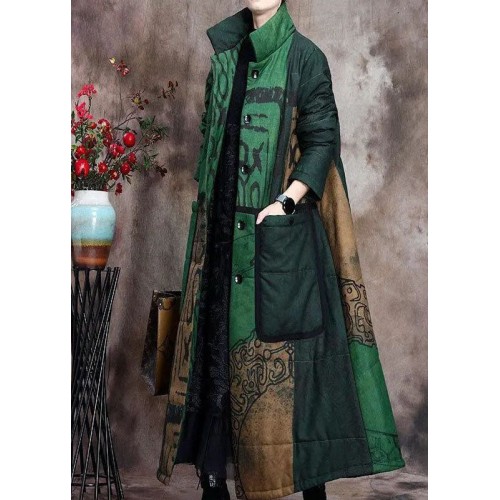 Boutique Green Print Pockets Thick Cotton Winter Long sleeve Coat