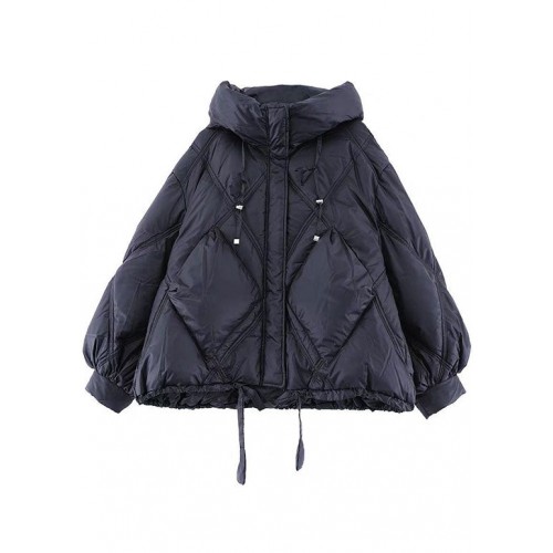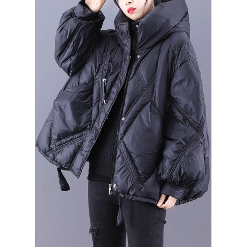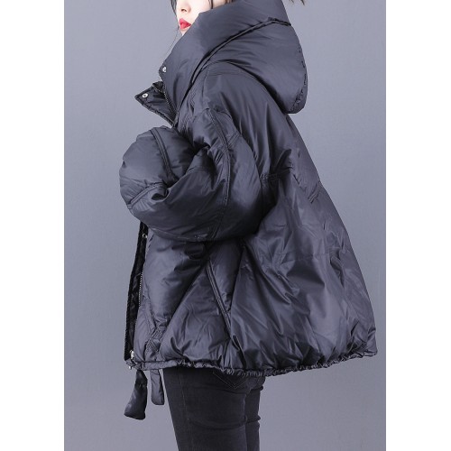 Beautiful Black hooded Loose zippered Warm Winter Duck Down Jacket