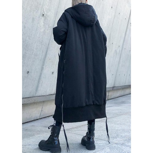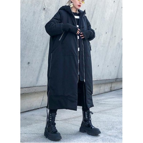 Fine black winter parkas oversize hooded zippered winter coats