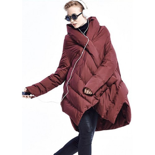 Product Code: black-fashion-cloak-asymmetrical-design-thick-winter-duck-down-c