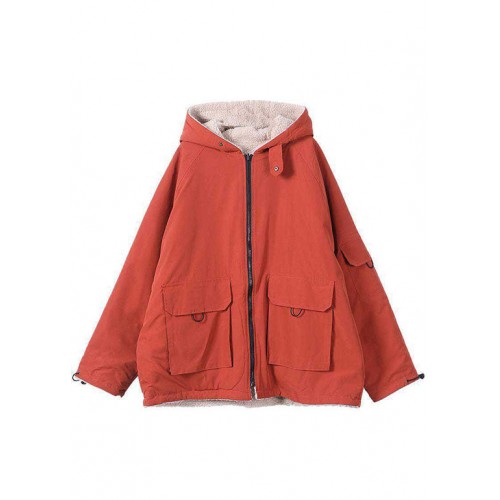 Product Code: fashion-orange-hooded-zippered-pockets-loose-winter-parkas-coat
