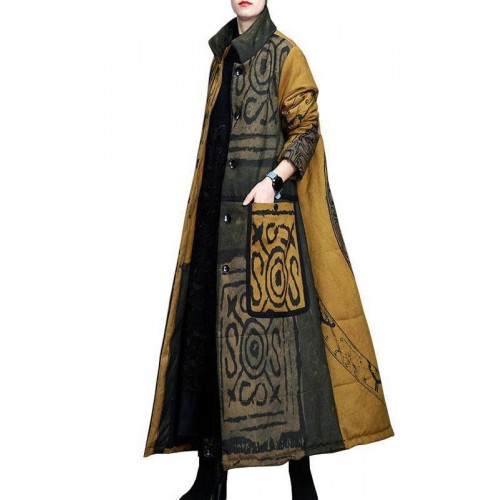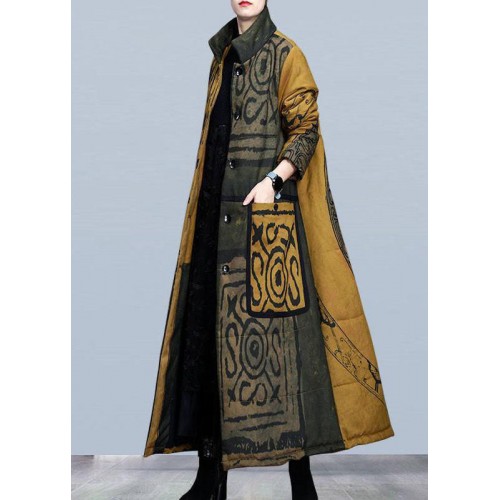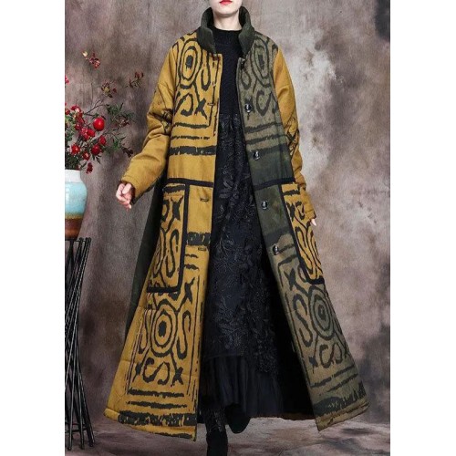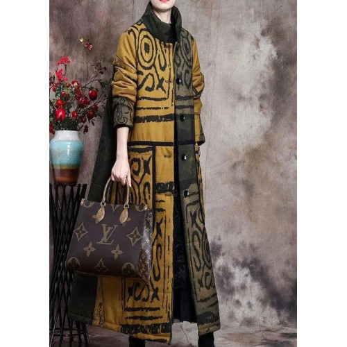 Product Code: beautiful-yellow-stand-collar-button-winter-cotton-parka-long-sl